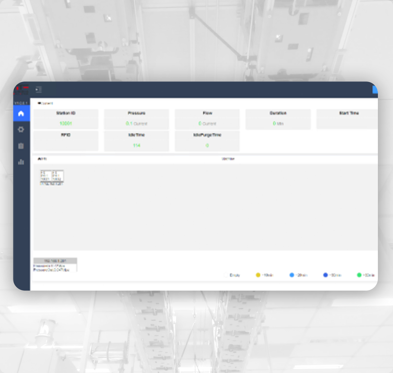 OHBP控制系统对整条Bay的Port进行洁净吹气,分为始终吹气和感应吹气两种类型,其可配置RFID传感器、温湿度传感器,可记录Foup放置的次数,以及整个Purge过程的温湿度变化,当RFID读取异常、温湿度未达标,具有实时报警功能;